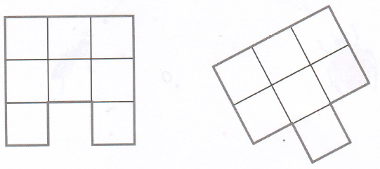 Площадь первой фигуры − 8 единичных квадратов. Площадь второй фигуры − 7 единичных квадратов. 7 < 8, значит, площадь второй фигуры меньше.