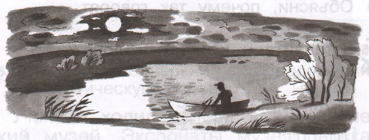 Лодка (ло́дочка) причалила к берегу. Лунный столб (столбы́) тянулся, как мост по реке (ре́чка).