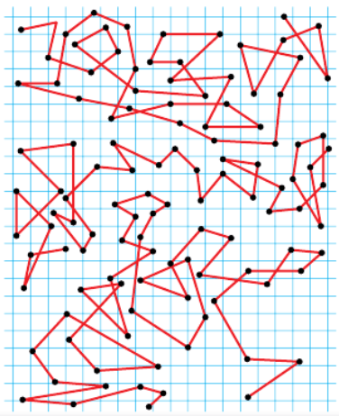 Нанесите на предметное стекло каплю чистой воды и с помощью кисточки подкрасьте её очень небольшим количеcтвом чёрной туши, предварительно разведённой водой до светло−серого цвета. Накройте каплю покровным стеклом. Перемещая тубус микроскопа, добейтесь чёткого изображения. Вы увидите, как чёрные частицы туши совершают самопроизвольное движение. Но ведь их−то точно нельзя назвать живыми! Подобный опыт поставил выдающийся французский ученый Ж.Б.Перрен. Он зарисовал движение частиц примерно так, как показано на рисунке 43.