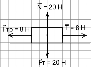 µ = $\frac{8\;Н}{20\;Н}$ = 0,4